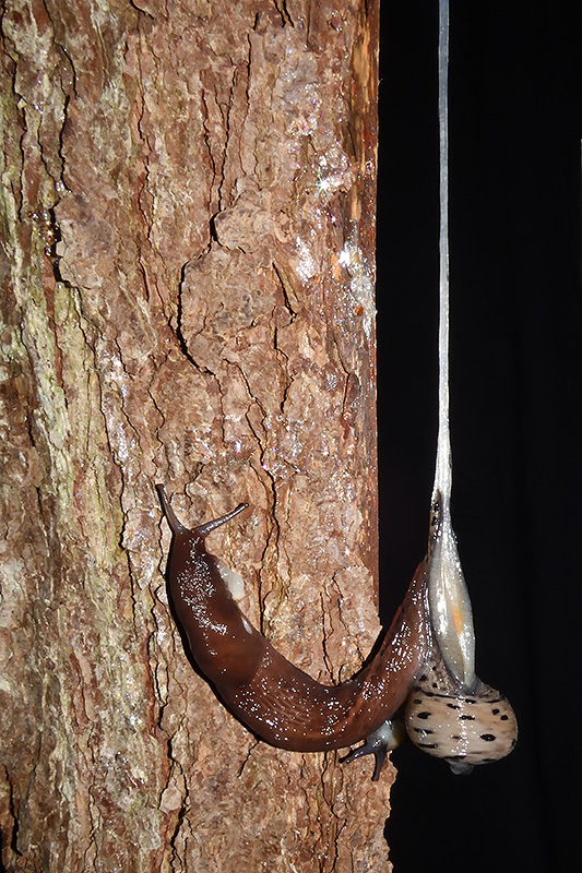 Paarungsablauf Limax sarnensis Die endgültige Länge des Schleimfadens variiert gemäss Literaturangaben zwischen 14 und 70 cm. Bei dieser Paarung weist der Schleimfaden eine Länge von 36 cm auf. Informationen zum Tier: Art: Sarner Schnegel (Limax sarnensis). |