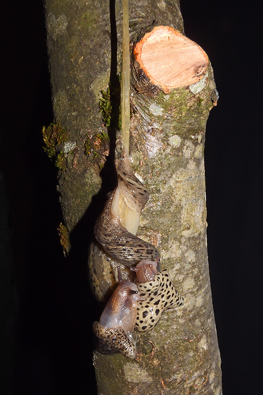 Paarungsablauf Limax maximus Die endgültige Länge des Schleimfadens beträgt gemäss Literaturangaben bis etwa 40 cm. Bei dieser Paarung weist der Schleimfaden eine Länge von 32 cm auf. Informationen zum Tier: Art: Grosser Schnegel (Limax maximus). |