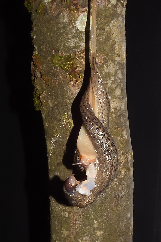 Paarungsablauf Limax maximus Die endgültige Länge des Schleimfadens beträgt gemäss Literaturangaben bis etwa 40 cm. Bei dieser Paarung weist der Schleimfaden eine Länge von 32 cm auf. Informationen zum Tier: Art: Grosser Schnegel (Limax maximus). |