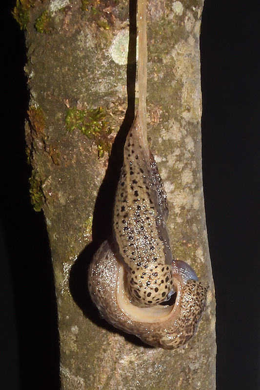 Paarungsablauf Limax maximus Die endgültige Länge des Schleimfadens beträgt gemäss Literaturangaben bis etwa 40 cm. Bei dieser Paarung weist der Schleimfaden eine Länge von 32 cm auf. Informationen zum Tier: Art: Grosser Schnegel (Limax maximus). |