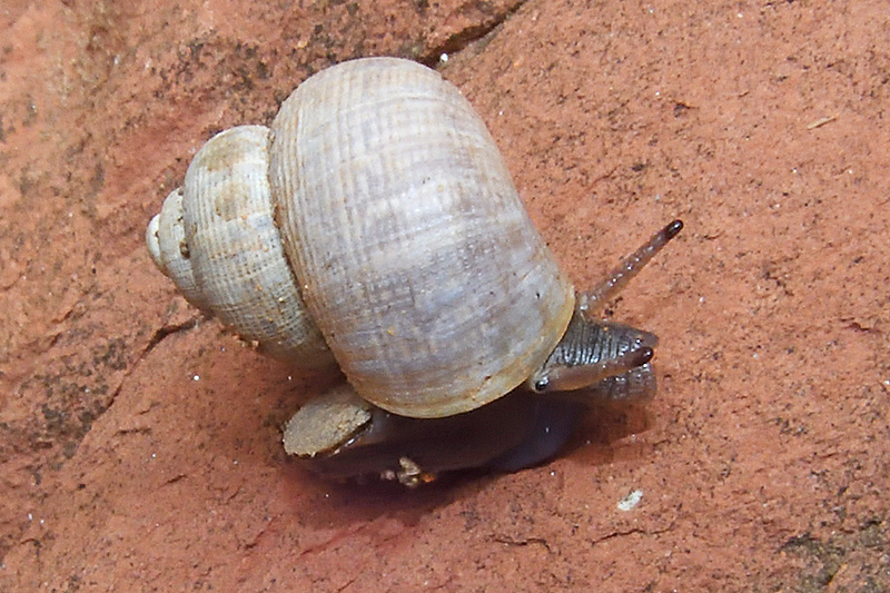 Schöne Landdeckelschnecken sind doch recht eigenartige Geschöpfe. So findet sich das Auge nicht wie für Landschnecken gewohnt auf dem oberen Fühler, sondern auf der Aussenseite der Basis. Die Mündung des Gehäuses kann durch ein verkalktes, auf dem hinteren Teil des Fusses aufsitzendes Operculum verschlossen werden. Der Fuss ist durch eine Längsfurche zweigeteilt. Eine der beiden Hälften wird in der Luft vorgeschoben und dann abgesetzt. Dann wird die andere Hälfte vom Boden gelöst und vorgeschoben. Zudem sind die Tiere getrenntgeschlechtlich. Informationen zum Tier: Art: Schöne Landdeckelschnecke (Pomatias elegans). |