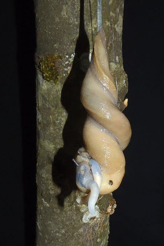 Paarungsablauf Limax cf. strobeli Die endgültige Länge des Schleimfadens variiert von etwa 30 cm bis zu gemäss Literaturangaben 100 cm. Bei dieser Paarung weist der Schleimfaden eine Länge von 31 cm auf. Informationen zum Tier: Art: Blauköpfiger Schnegel (Limax cf. strobeli). |