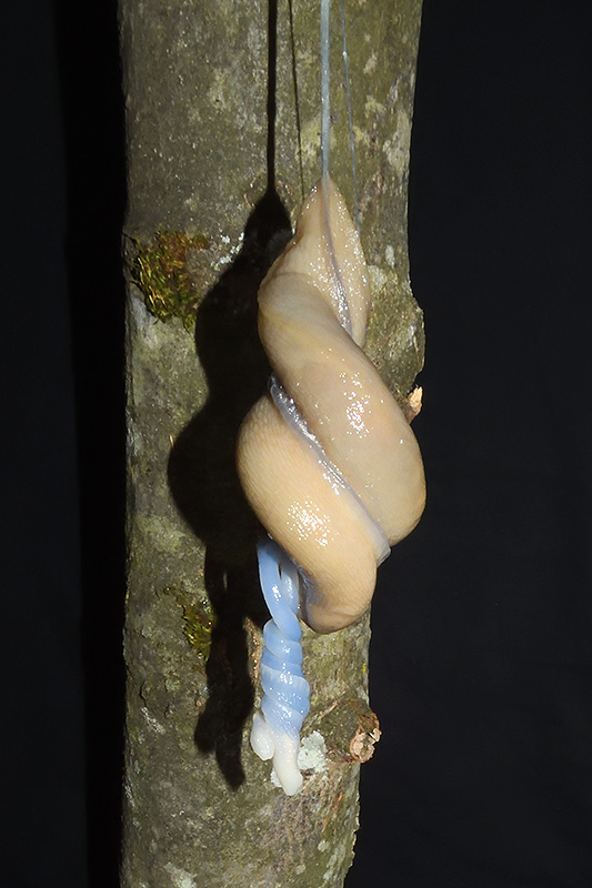 Paarungsablauf Limax cf. strobeli Die endgültige Länge des Schleimfadens variiert von etwa 30 cm bis zu gemäss Literaturangaben 100 cm. Bei dieser Paarung weist der Schleimfaden eine Länge von 31 cm auf. Informationen zum Tier: Art: Blauköpfiger Schnegel (Limax cf. strobeli). |
