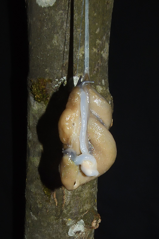 Paarungsablauf Limax cf. strobeli Die endgültige Länge des Schleimfadens variiert von etwa 30 cm bis zu gemäss Literaturangaben 100 cm. Bei dieser Paarung weist der Schleimfaden eine Länge von 31 cm auf. Informationen zum Tier: Art: Blauköpfiger Schnegel (Limax cf. strobeli). |