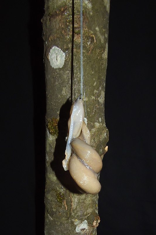 Paarungsablauf Limax cf. strobeli Die endgültige Länge des Schleimfadens variiert von etwa 30 cm bis zu gemäss Literaturangaben 100 cm. Bei dieser Paarung weist der Schleimfaden eine Länge von 31 cm auf. Informationen zum Tier: Art: Blauköpfiger Schnegel (Limax cf. strobeli). |