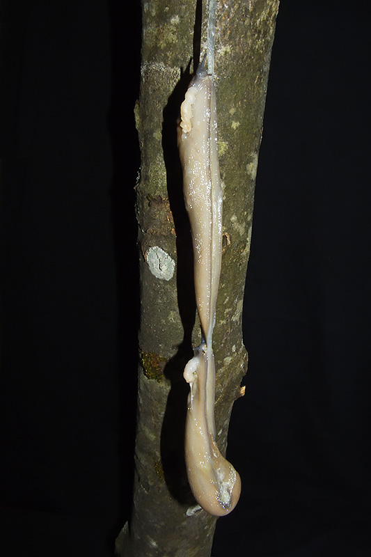 Paarungsablauf Limax cf. strobeli Die endgültige Länge des Schleimfadens variiert von etwa 30 cm bis zu gemäss Literaturangaben 100 cm. Bei dieser Paarung weist der Schleimfaden eine Länge von 31 cm auf. Informationen zum Tier: Art: Blauköpfiger Schnegel (Limax cf. strobeli). |