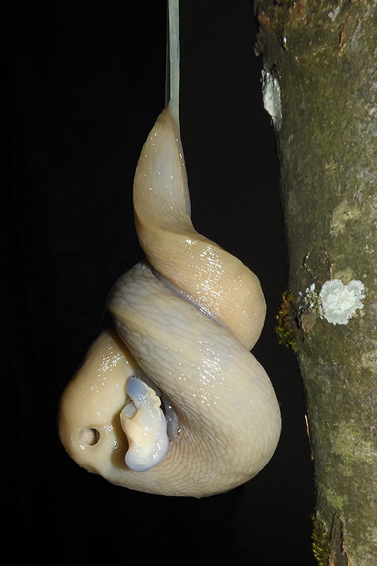 Paarungsablauf Limax cf. strobeli Die endgültige Länge des Schleimfadens variiert von etwa 30 cm bis zu gemäss Literaturangaben 100 cm. Bei dieser Paarung weist der Schleimfaden eine Länge von 62 cm auf. Informationen zum Tier: Art: Blauköpfiger Schnegel (Limax cf. strobeli). |