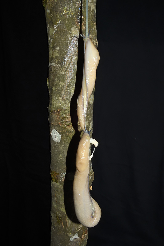 Paarungsablauf Limax cf. strobeli Die endgültige Länge des Schleimfadens variiert von etwa 30 cm bis zu gemäss Literaturangaben 100 cm. Bei dieser Paarung weist der Schleimfaden eine Länge von 62 cm auf. Informationen zum Tier: Art: Blauköpfiger Schnegel (Limax cf. strobeli). |
