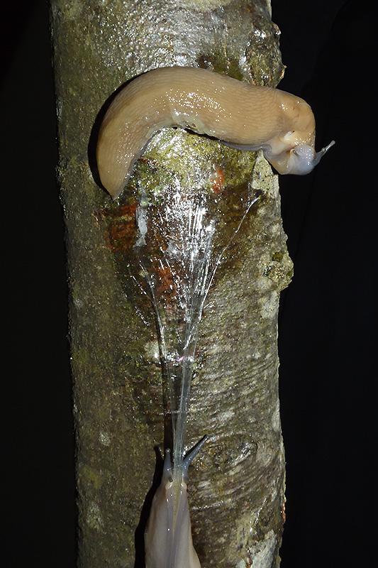 Paarungsablauf Limax cf. strobeli Die endgültige Länge des Schleimfadens variiert von etwa 30 cm bis zu gemäss Literaturangaben 100 cm. Bei dieser Paarung weist der Schleimfaden eine Länge von 62 cm auf. Informationen zum Tier: Art: Blauköpfiger Schnegel (Limax cf. strobeli). |