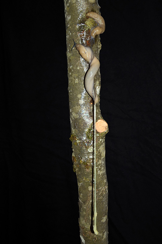 Paarungsablauf Limax cf. strobeli Die endgültige Länge des Schleimfadens variiert von etwa 30 cm bis zu gemäss Literaturangaben 100 cm. Bei dieser Paarung weist der Schleimfaden eine Länge von 62 cm auf. Informationen zum Tier: Art: Blauköpfiger Schnegel (Limax cf. strobeli). |