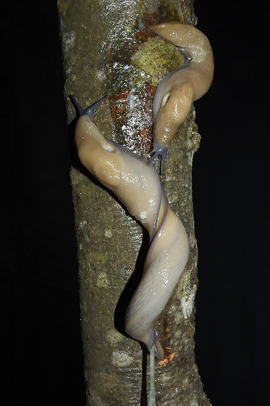 Paarungsablauf Limax cf. strobeli Die endgültige Länge des Schleimfadens variiert von etwa 30 cm bis zu gemäss Literaturangaben 100 cm. Bei dieser Paarung weist der Schleimfaden eine Länge von 62 cm auf. Informationen zum Tier: Art: Blauköpfiger Schnegel (Limax cf. strobeli). |