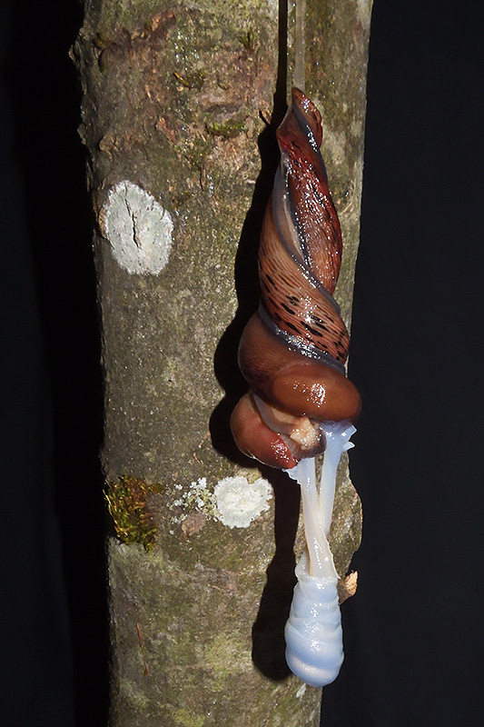 Paarungsablauf Purpurschnegel (Limax cf. dacampi) Die endgültige Länge des Schleimfadens beträgt gemäss Literaturangaben um 20 cm. Bei dieser Paarung weist der Schleimfaden eine Länge von 19 cm auf. Informationen zum Tier: Art: Purpurschnegel (Limax cf. dacampi). |
