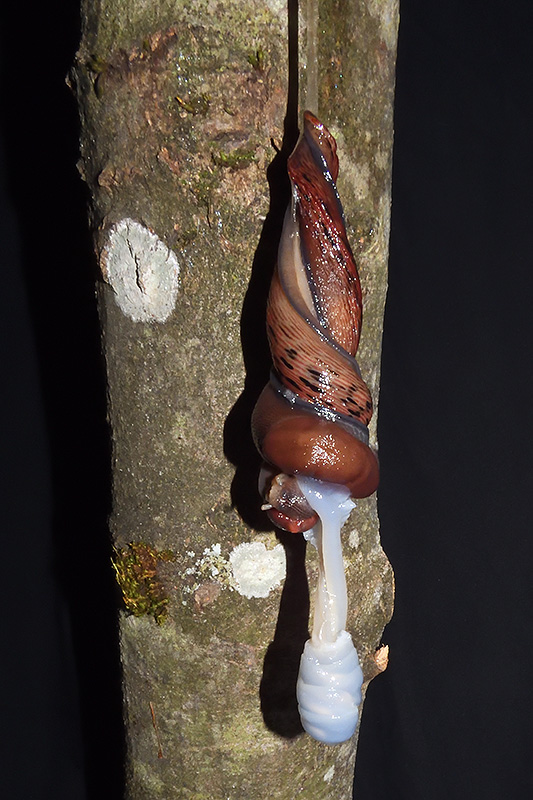 Paarungsablauf Purpurschnegel (Limax cf. dacampi) Die endgültige Länge des Schleimfadens beträgt gemäss Literaturangaben um 20 cm. Bei dieser Paarung weist der Schleimfaden eine Länge von 19 cm auf. Informationen zum Tier: Art: Purpurschnegel (Limax cf. dacampi). |