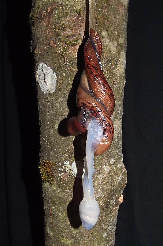 Paarungsablauf Purpurschnegel (Limax cf. dacampi) Die endgültige Länge des Schleimfadens beträgt gemäss Literaturangaben um 20 cm. Bei dieser Paarung weist der Schleimfaden eine Länge von 19 cm auf. Informationen zum Tier: Art: Purpurschnegel (Limax cf. dacampi). |