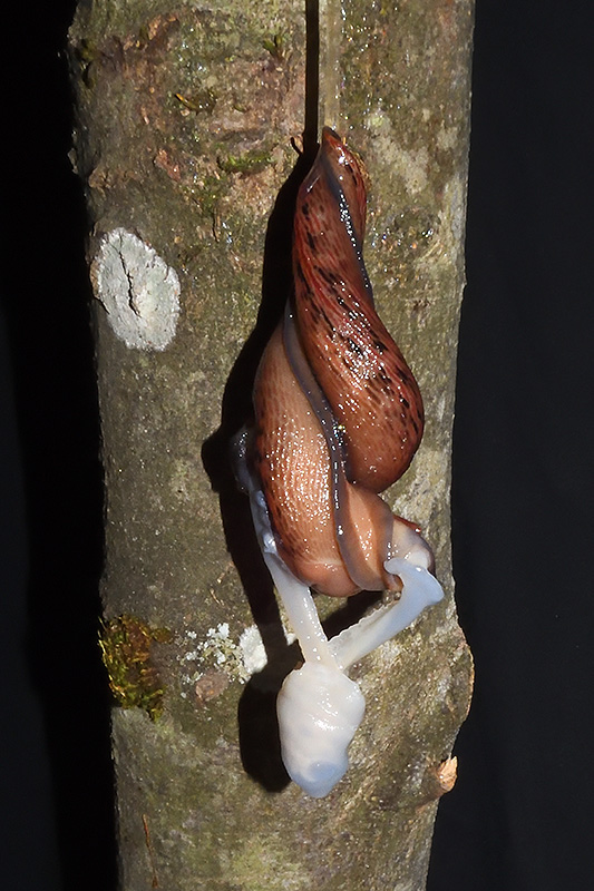 Paarungsablauf Purpurschnegel (Limax cf. dacampi) Die endgültige Länge des Schleimfadens beträgt gemäss Literaturangaben um 20 cm. Bei dieser Paarung weist der Schleimfaden eine Länge von 19 cm auf. Informationen zum Tier: Art: Purpurschnegel (Limax cf. dacampi). |
