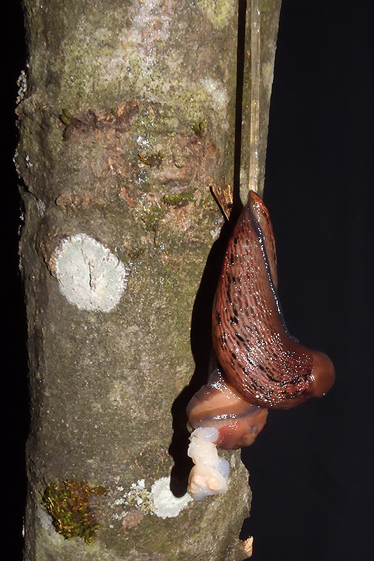 Paarungsablauf Purpurschnegel (Limax cf. dacampi) Die endgültige Länge des Schleimfadens beträgt gemäss Literaturangaben um 20 cm. Bei dieser Paarung weist der Schleimfaden eine Länge von 19 cm auf. Informationen zum Tier: Art: Purpurschnegel (Limax cf. dacampi). |
