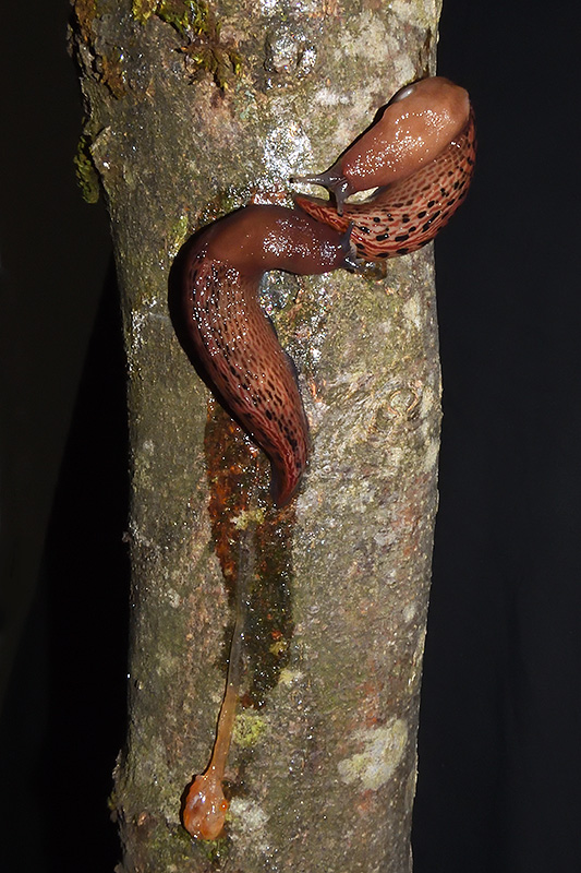 Paarungsablauf Purpurschnegel (Limax cf. dacampi) Die endgültige Länge des Schleimfadens beträgt gemäss Literaturangaben um 20 cm. Bei dieser Paarung weist der Schleimfaden eine Länge von 19 cm auf. Informationen zum Tier: Art: Purpurschnegel (Limax cf. dacampi). |