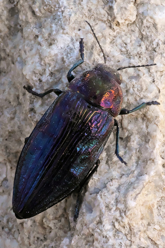 Ein Bauern-Prachtkäfer hat sich auf einer Steinmauer niedergelassen. Informationen zum Tier: Art: Bauern-Prachtkäfer (Buprestis rustica). |