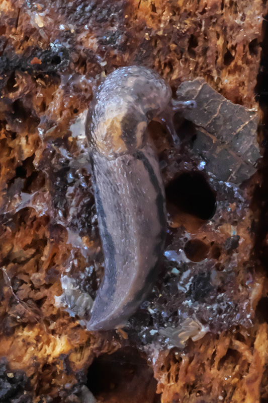 Eine Jungschnecke an einem Stück Totholz. Informationen zum Tier: Art: Grosser Schnegel (Limax maximus). |
