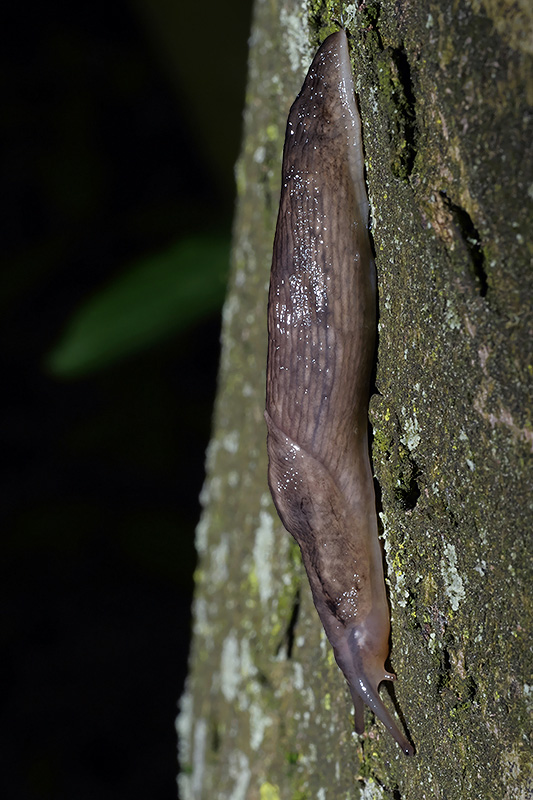 Die für die Art eigentlich typischen Bänder und Binden sind so nicht mehr zu erkennen. Informationen zum Tier: Art: Baumschnegel (Lehmannia marginata). |