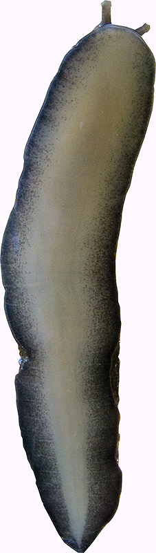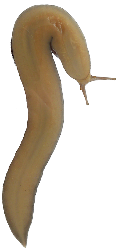 Ein Exemplar mit orangefarbenem Körperschleim und orange pigmentierten Seitenfeldern: |