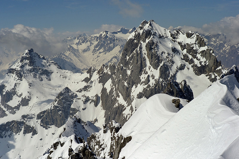 Dahinter die teilweise im Gewölk steckenden Gipfel der Urner Alpen.