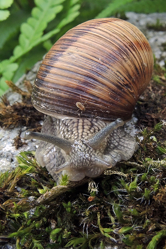 Eine Weinbergschnecke mit blindem Passagier ... Informationen zum Tier: Art: Weinbergschnecke (Helix pomatia). |