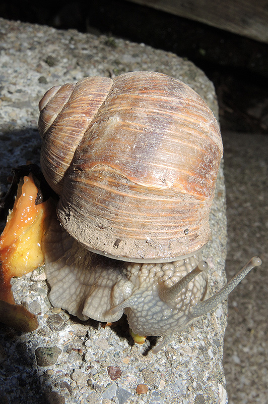 Die Reststücke des Apfels sind eigentlich für die Schnegel gedacht ... Informationen zum Tier: Art: Weinbergschnecke (Helix pomatia). |