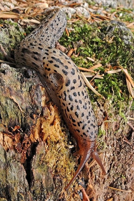 Elegant schleimt sich der Schnegel in die Tiefe ... Informationen zum Tier: Art: Grosser Schnegel (Limax maximus). |