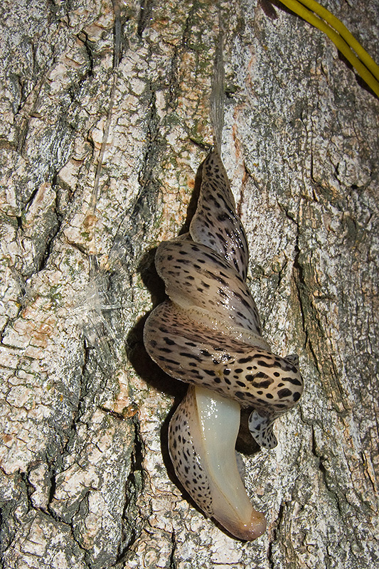 Wieder umschlingen sie sich kopfüber hängend. Informationen zum Tier: Art: Grosser Schnegel (Limax maximus). |