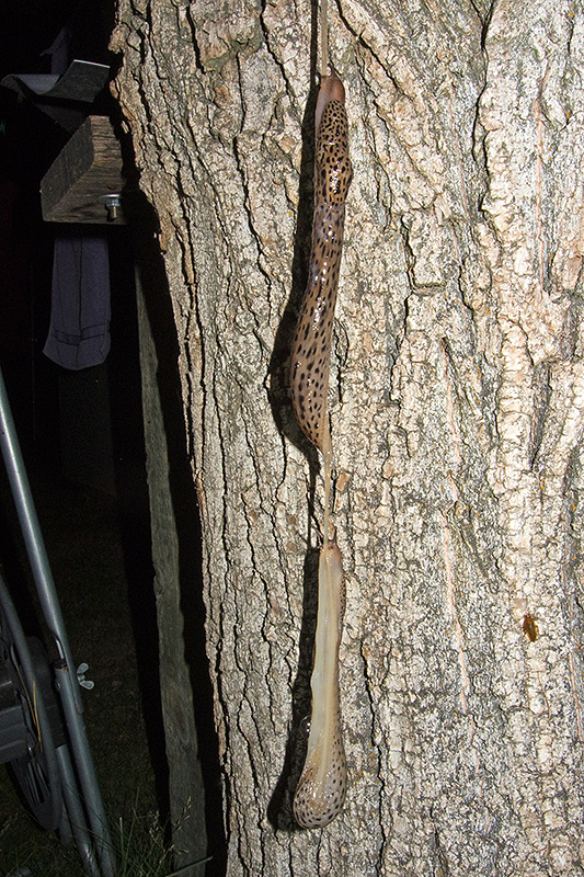 Paarungsablauf Limax maximus Die endgültige Länge des Schleimfadens beträgt gemäss Literaturangaben bis etwa 40 cm. Bei dieser Paarung weist der Schleimfaden eine Länge von 40 cm auf. Informationen zum Tier: Art: Grosser Schnegel (Limax maximus). |