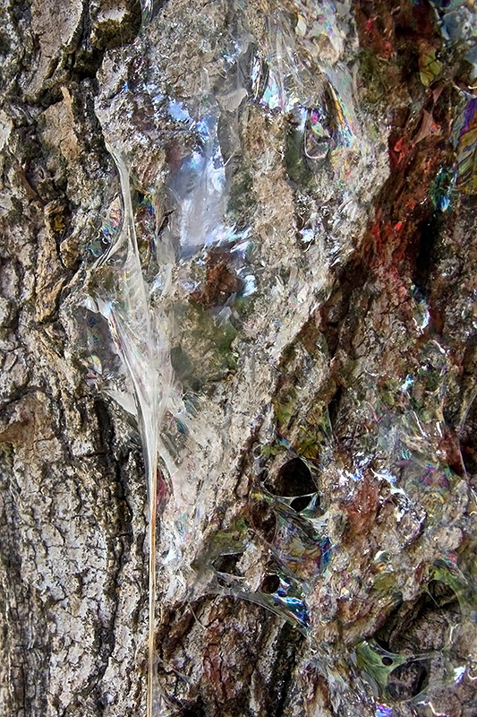 Der während der Paarungsvorbereitung abgesonderte Schleim wie auch der Ansatz des Schleimfadens am Stamm sind am der Paarung folgenden Morgen deutlich erkennbar. Informationen zum Tier: Art: Grosser Schnegel (Limax maximus). |
