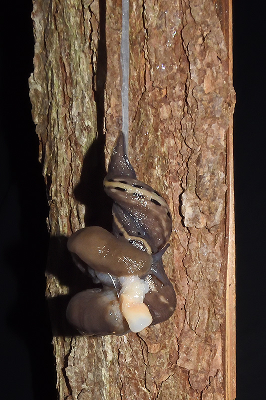 Paarungsablauf Limax sarnensis Die endgültige Länge des Schleimfadens variiert gemäss Literaturangaben zwischen 14 und 70 cm. Bei dieser Paarung weist der Schleimfaden eine Länge von 54 cm auf. Informationen zum Tier: Art: Sarner Schnegel (Limax sarnensis). |