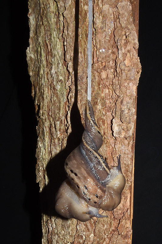 Paarungsablauf Limax sarnensis Die endgültige Länge des Schleimfadens variiert gemäss Literaturangaben zwischen 14 und 70 cm. Bei dieser Paarung weist der Schleimfaden eine Länge von 54 cm auf. Informationen zum Tier: Art: Sarner Schnegel (Limax sarnensis). |