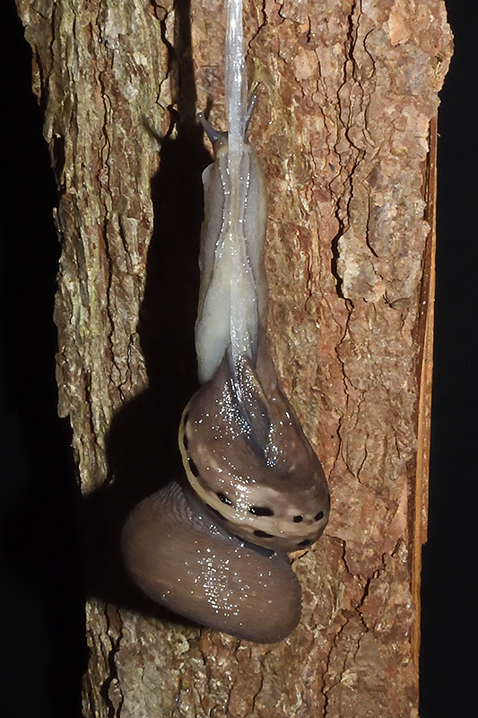 Paarungsablauf Limax sarnensis Die endgültige Länge des Schleimfadens variiert gemäss Literaturangaben zwischen 14 und 70 cm. Bei dieser Paarung weist der Schleimfaden eine Länge von 54 cm auf. Informationen zum Tier: Art: Sarner Schnegel (Limax sarnensis). |