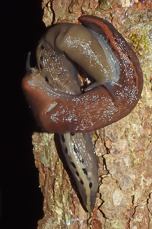 Paarungsablauf Limax sarnensis Die endgültige Länge des Schleimfadens variiert gemäss Literaturangaben zwischen 14 und 70 cm. Bei dieser Paarung weist der Schleimfaden eine Länge von 23 cm auf. Informationen zum Tier: Art: Sarner Schnegel (Limax sarnensis). |