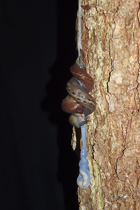 Paarungsablauf Limax sarnensis Die endgültige Länge des Schleimfadens variiert gemäss Literaturangaben zwischen 14 und 70 cm. Bei dieser Paarung weist der Schleimfaden eine Länge von 23 cm auf. Informationen zum Tier: Art: Sarner Schnegel (Limax sarnensis). |