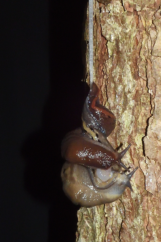 Paarungsablauf Limax sarnensis Die endgültige Länge des Schleimfadens variiert gemäss Literaturangaben zwischen 14 und 70 cm. Bei dieser Paarung weist der Schleimfaden eine Länge von 23 cm auf. Informationen zum Tier: Art: Sarner Schnegel (Limax sarnensis). |