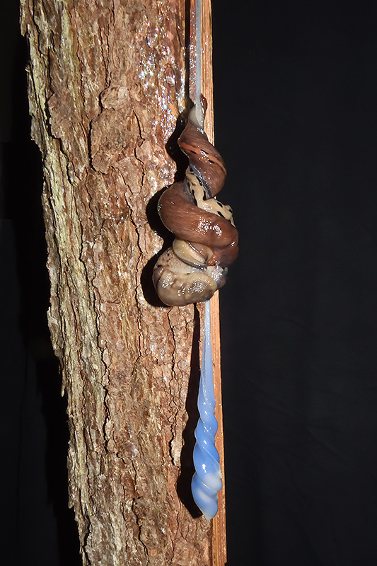 Paarungsablauf Limax sarnensis Die endgültige Länge des Schleimfadens variiert gemäss Literaturangaben zwischen 14 und 70 cm. Bei dieser Paarung weist der Schleimfaden eine Länge von 36 cm auf. Informationen zum Tier: Art: Sarner Schnegel (Limax sarnensis). |