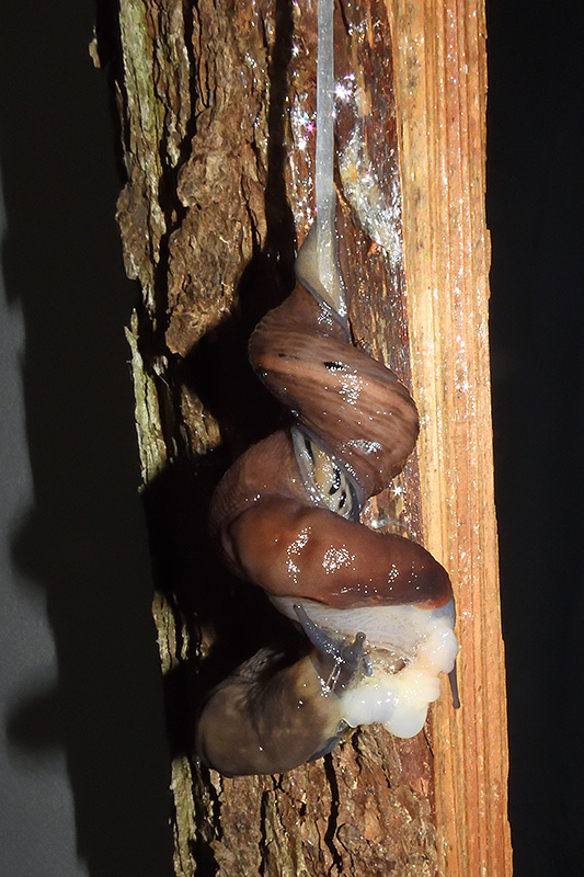 Paarungsablauf Limax sarnensis Die endgültige Länge des Schleimfadens variiert gemäss Literaturangaben zwischen 14 und 70 cm. Bei dieser Paarung weist der Schleimfaden eine Länge von 36 cm auf. Informationen zum Tier: Art: Sarner Schnegel (Limax sarnensis). |
