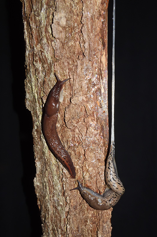 Paarungsablauf Limax sarnensis Die endgültige Länge des Schleimfadens variiert gemäss Literaturangaben zwischen 14 und 70 cm. Bei dieser Paarung weist der Schleimfaden eine Länge von 36 cm auf. Informationen zum Tier: Art: Sarner Schnegel (Limax sarnensis). |