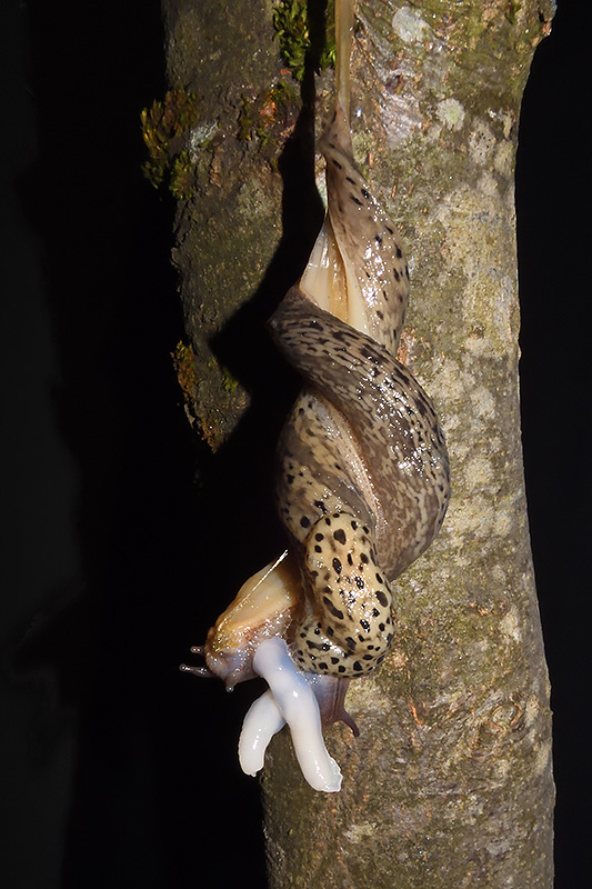 Paarungsablauf Limax maximus Die endgültige Länge des Schleimfadens beträgt gemäss Literaturangaben bis etwa 40 cm. Bei dieser Paarung weist der Schleimfaden eine Länge von 32 cm auf. Informationen zum Tier: Art: Grosser Schnegel (Limax maximus). |