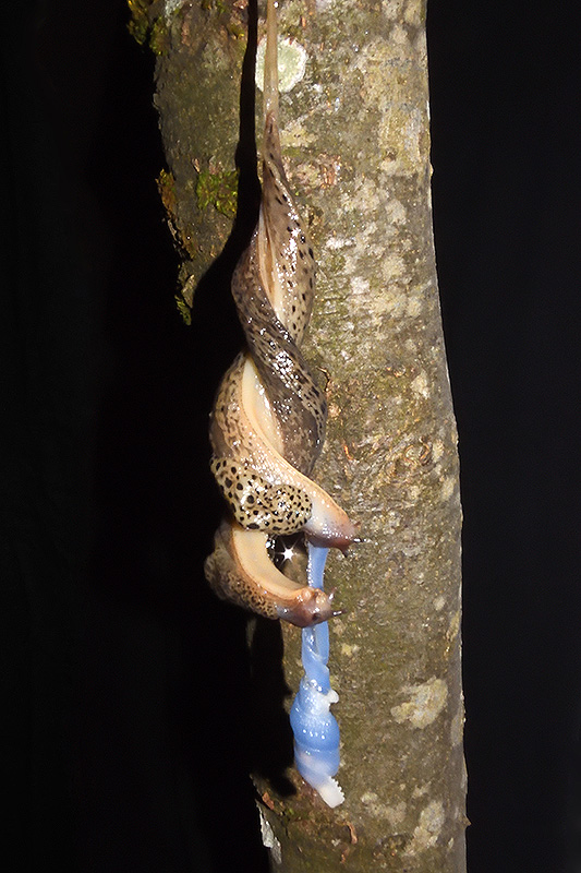 Paarungsablauf Limax maximus Die endgültige Länge des Schleimfadens beträgt gemäss Literaturangaben bis etwa 40 cm. Bei dieser Paarung weist der Schleimfaden eine Länge von 32 cm auf. Informationen zum Tier: Art: Grosser Schnegel (Limax maximus). |
