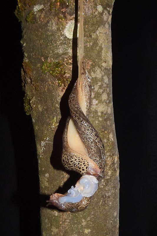 Paarungsablauf Limax maximus Die endgültige Länge des Schleimfadens beträgt gemäss Literaturangaben bis etwa 40 cm. Bei dieser Paarung weist der Schleimfaden eine Länge von 32 cm auf. Informationen zum Tier: Art: Grosser Schnegel (Limax maximus). |