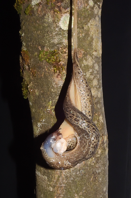 Paarungsablauf Limax maximus Die endgültige Länge des Schleimfadens beträgt gemäss Literaturangaben bis etwa 40 cm. Bei dieser Paarung weist der Schleimfaden eine Länge von 32 cm auf. Informationen zum Tier: Art: Grosser Schnegel (Limax maximus). |