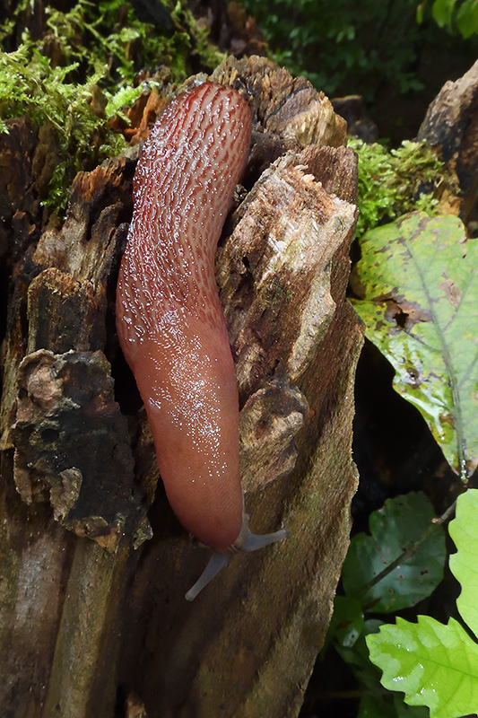 Es ist das einzige fleckenlose Exemplar, das ich im Gebiet auffinde. Informationen zum Tier: Art: Purpurschnegel (Limax cf. dacampi). |