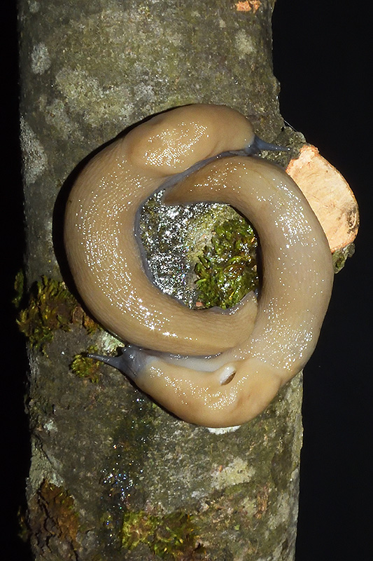 Paarungsablauf Limax cf. strobeli Die endgültige Länge des Schleimfadens variiert von etwa 30 cm bis zu gemäss Literaturangaben 100 cm. Bei dieser Paarung weist der Schleimfaden eine Länge von 31 cm auf. Informationen zum Tier: Art: Blauköpfiger Schnegel (Limax cf. strobeli). |