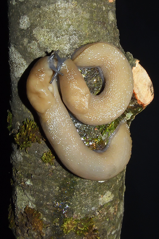 Paarungsablauf Limax cf. strobeli Die endgültige Länge des Schleimfadens variiert von etwa 30 cm bis zu gemäss Literaturangaben 100 cm. Bei dieser Paarung weist der Schleimfaden eine Länge von 31 cm auf. Informationen zum Tier: Art: Blauköpfiger Schnegel (Limax cf. strobeli). |