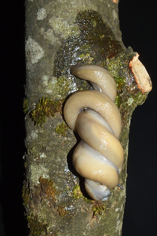 Paarungsablauf Limax cf. strobeli Die endgültige Länge des Schleimfadens variiert von etwa 30 cm bis zu gemäss Literaturangaben 100 cm. Bei dieser Paarung weist der Schleimfaden eine Länge von 31 cm auf. Informationen zum Tier: Art: Blauköpfiger Schnegel (Limax cf. strobeli). |