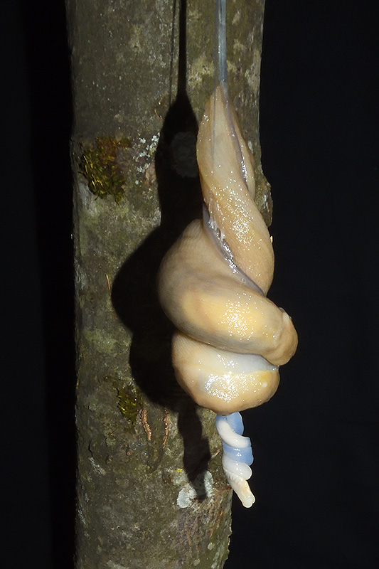 Paarungsablauf Limax cf. strobeli Die endgültige Länge des Schleimfadens variiert von etwa 30 cm bis zu gemäss Literaturangaben 100 cm. Bei dieser Paarung weist der Schleimfaden eine Länge von 31 cm auf. Informationen zum Tier: Art: Blauköpfiger Schnegel (Limax cf. strobeli). |